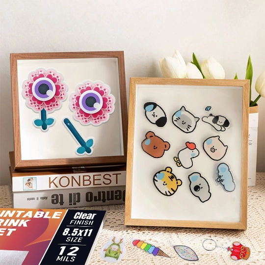 세미트론 수축 플라스틱: 인쇄 가능한 축소지의 한쪽 면이 서리가 낀 상태입니다 그리고 다른 하나는 반짝이고. 찬 면을 출력할 때 주의하세요.